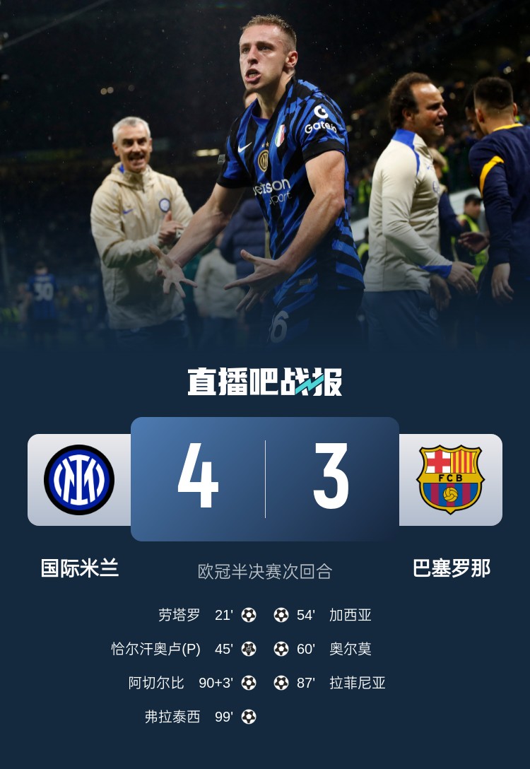 2025-05-07 18:27:45国米在意大利国内近4场比赛仅打进1球,欧冠对阵巴萨2场比赛进7球